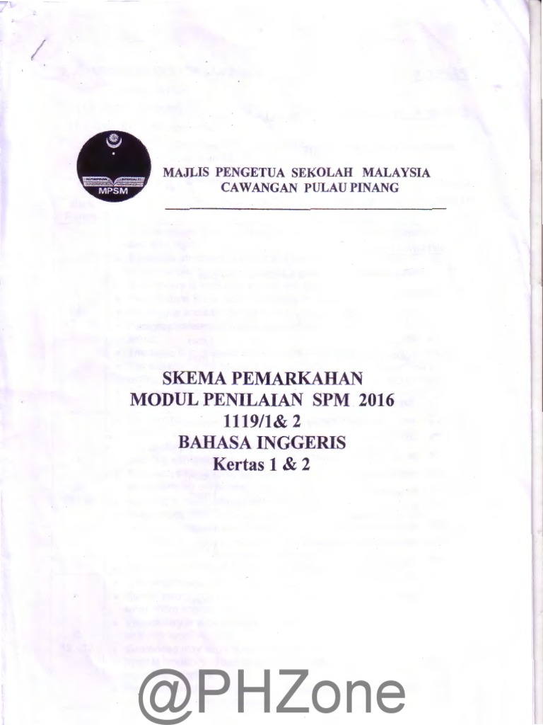 2016 Percubaan Spm Pulau Pinang Bahasa Inggeris Skema Pemarkahan Pdf Vocabulary Punctuation